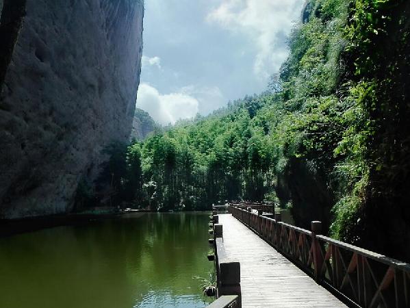 2004年6月一行外地人無意走入位于泰寧縣城西北十五公里處的寨下村,眼前的美景令人驚詫,鬼斧神工構(gòu)造一方福天洞府,滴水成崖百年時光刻在峽谷之中。經(jīng)過數(shù)年開發(fā),最后呈現(xiàn)在游人面前的是一處大自然獻予的奇跡。 泰寧寨下大峽谷,曾被聯(lián)合國教科文組織稱為“世界地質(zhì)公園的榜樣景區(qū)”,是泰寧修建的第一條科考線,其地質(zhì)地貌,生態(tài)環(huán)境都是同類型景區(qū)中的翹楚,現(xiàn)為泰寧世界地質(zhì)公園的重點景區(qū),是天然的地質(zhì)博物館。 景區(qū)內(nèi)常年被流水環(huán)繞,清幽的環(huán)境宛如一座天然氧吧,珍惜的草木植物覆蓋兩平方公里的景區(qū),潺潺溪水清澈見底,是夏季極佳的避暑勝地。景區(qū)內(nèi)宛如一條時空隧道,不同年代不同層次的地質(zhì)地貌依次出現(xiàn),時空的長河在此處匯聚成一個縮影,靜待來客探尋。 景區(qū)內(nèi)多數(shù)觀光點均為陸路,山道依傍S形環(huán)山泉水而建,秘境深處偶有一二小屋,曾經(jīng)是客居此地的客家人故寨,景區(qū)內(nèi)景點分為三類,分別是以流水侵蝕、重力崩塌、構(gòu)造運動為主的三種地質(zhì)作用形成的,是一靈活現(xiàn)的教科書。