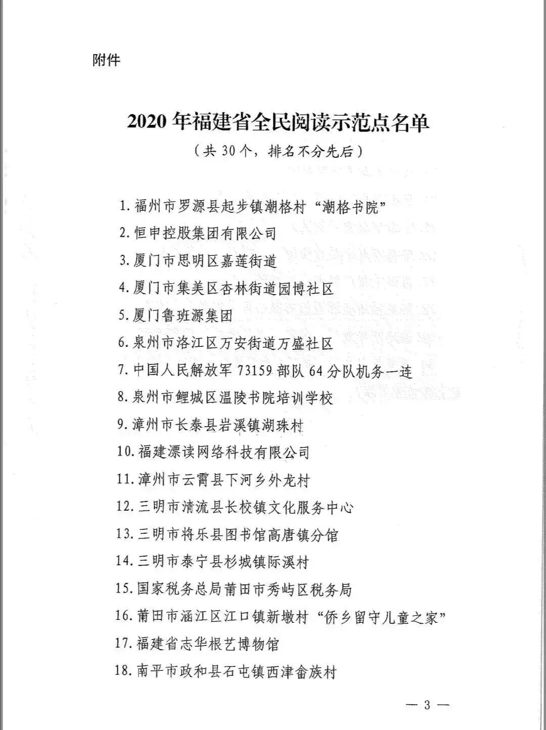 泰寧縣杉城鎮際溪被評為2020年福建省全民閱讀示范點! 根據福建省新聞出版局關于確定2020年福建省全民閱讀示范點的通知(閩新出〔2020〕129號),泰寧縣杉城鎮際溪村被評為2020年福建省全民閱讀示范點。