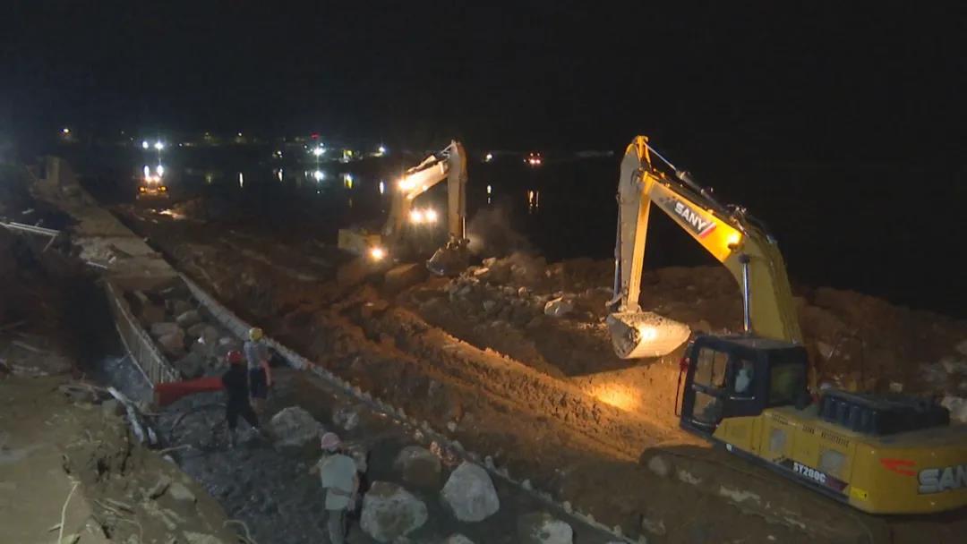 在生態修復項目現場,有7個點同時施工,11臺施工機械來回運作,對熊家棟村組、張家坊生態護岸和金湖沿岸生態帶進行生態修復。