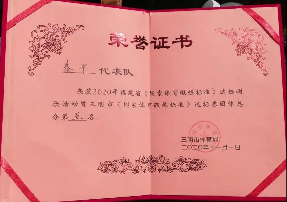 泰寧獲獎!2020年福建省《國家體育鍛煉標準》達標測驗活動暨三明市《國家體育鍛煉標準》達標賽順利完賽!