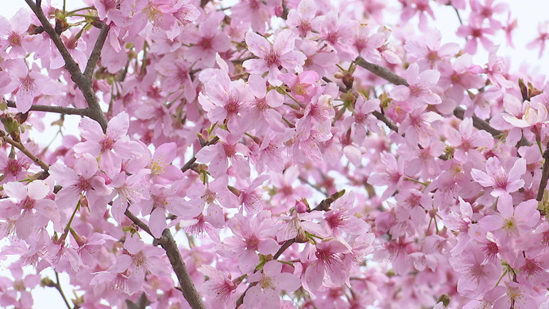 在泰寧縣環(huán)城路橫五線,道路兩邊的櫻花迎春競(jìng)相綻放,延綿開(kāi)來(lái),一簇簇艷麗的花朵綴在枝間枝頭迎風(fēng)招展,如春雨纏纏綿綿,甚是浪漫。