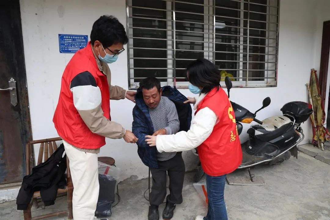 考慮到一些殘疾人朋友行動不便,活動當天采取現場發放和入戶發放兩種形式進行。入戶工作人員一邊把棉衣交到他們手里,一邊和他們拉著家常,關心問詢他們的康復情況,解讀宣傳各項惠殘政策,并為他們送上節前問候。