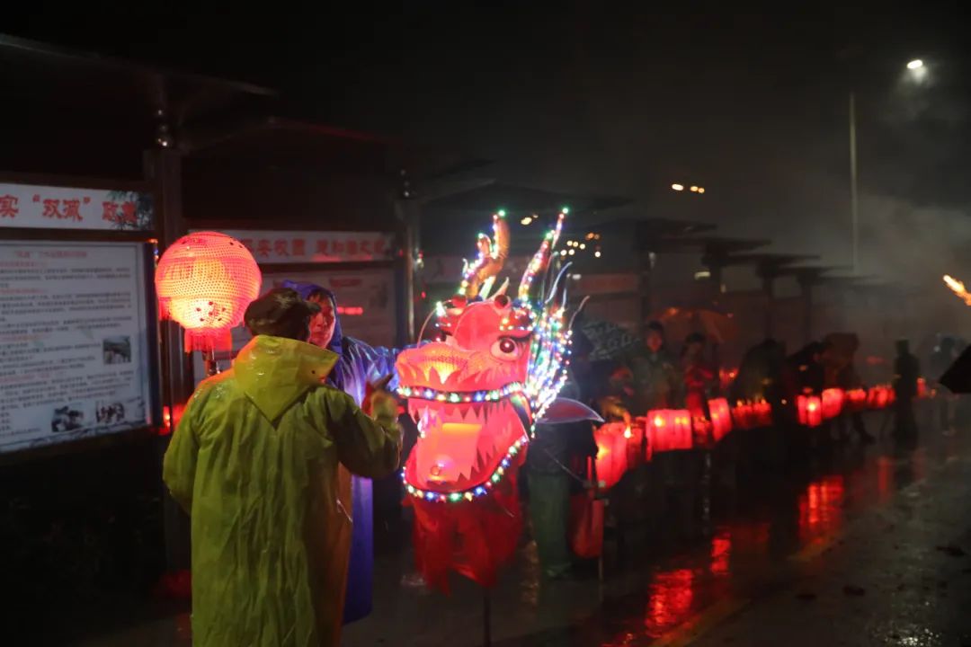 晚上7點(diǎn),雖然天空飄著小雨,卻沒能阻擋大家的熱情,上青鄉(xiāng)集鎮(zhèn)上熱鬧非凡,鑼鼓聲聲,人聲鼎沸,舞龍者引著長(zhǎng)龍騰空起舞,上下起伏,左右蜿蜒,一條條燈龍?jiān)诖蠼中∠镏恤骠嫫鹞琛驘羲街帲松饺撕#傩杖挤疟夼凇⒀婊鹣嘤舨省⑿δ槨⒈夼诼暋⒑炔事暯蝗趨R織成萬(wàn)民同樂的動(dòng)人場(chǎng)面。