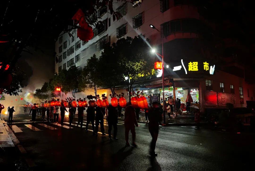 2月4日,在泰寧縣大田鄉(xiāng),一條紅彤彤的“火蚯蚓”蜿蜒盤旋,變換著造型從街頭走來,村民們興高采烈的舞起當(dāng)?shù)靥赜械摹膀球緹簟保黄饸g度元宵佳節(jié)。