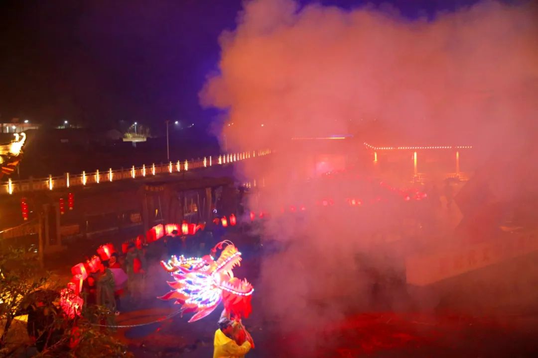 茶東坑魚子燈是本村鄒氏村民的獨(dú)家絕活,也是三明市市級(jí)非物質(zhì)文化遺產(chǎn),取其“魚”與“余”“燈”與“登”諧音,寓意年年有余,五谷豐登。為了慶賀豐收祈禱來年吉祥,村民們總要自制魚子燈,并用上幾天時(shí)間來鬧燈,這一習(xí)俗始自清朝道光年間,至今已有近兩百年的歷史。 朱口鎮(zhèn)花燈舞龍鬧元宵 2月5日,朱口鎮(zhèn)街道上人聲鼎沸、鑼鼓喧天,來自不同街道、巷子的龍燈熱鬧起燈,一起歡度元宵佳節(jié)。