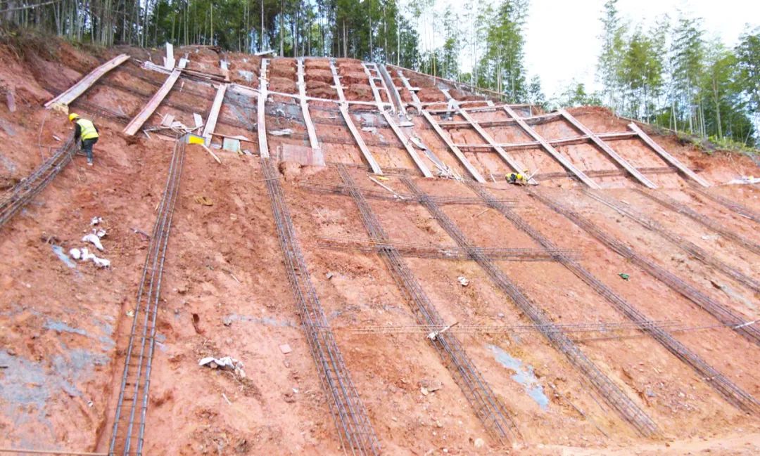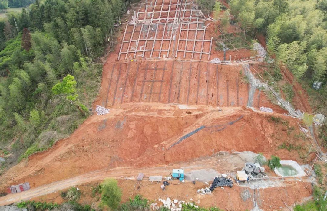 “項目主要采取建立抗滑擋墻、格構梁、錨桿、坡頂設置截水溝等措施進行加固治理。當前,已完成項目進度80%,計劃汛期前完工。待主體工程完成后,進行坡面綠化,為群眾的生命財產安全保駕護航。”下渠鎮自然資源所工作人員吳道斌說。