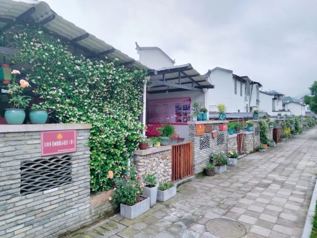 大田鄉全景圖 近年來,大田鄉以建設“生態休閑康養小鎮”為發展主線,以“五個美麗”創建活動為抓手,持續改善農村人居環境,通過靚化提升、因地制宜、盤活資源等舉措,讓鄉村增“顏”又增“值”,譜寫鄉村振興新篇章。 靚化提升,扮靚美麗鄉村庭院 清晨,推窗見綠,起步聞香,抬頭賞景;午時,約三兩好友閑坐庭院,靜品香茗,暢談人生;夜晚,仰望浩瀚星空,枕河而居,依水入夢,這是大田村老街住戶們的美好生活寫照。 大田鄉始終堅持“庭院美”帶動“全域美”,在保留粉墻、黛瓦、坡頂、翹腳、馬頭墻的杉陽明韻特色建筑風格的基礎上,依托本土青磚、舊瓦等建筑舊料對老街庭院進行景觀改造和墻體建設,同時針對院落雜物堆放問題,為每戶庭院都建了雜物儲藏室,方便村民收納農用具等,打造了老街美麗庭院示范帶,做到了布局設計協調、居室整齊清潔、庭院凈化綠化。