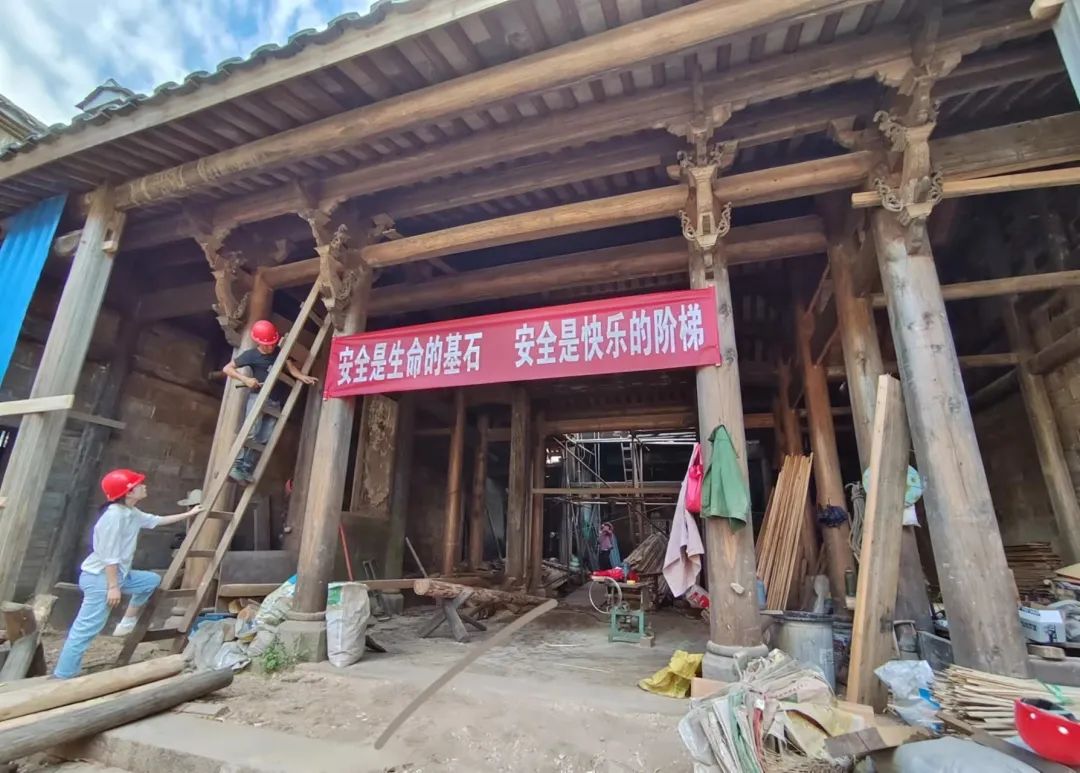 為重現古城風貌,泰寧縣將梁氏祖宅納入了古城保護與修繕工程中。2023年4月,修繕工程正式啟動,計劃用時7個月完成,主要包括屋頂瓦片的更換、木結構的加固、墻體的修補、地面的翻新、部分被破壞風貌恢復等。 為了確保修繕后的梁氏祖宅保持原汁原味,工程所使用的材料均采用當地的傳統材料,如泰寧紅米石、老杉木、小青瓦等。整個修繕過程遵循“修舊如舊”的原則,力求還原大院的歷史風貌。