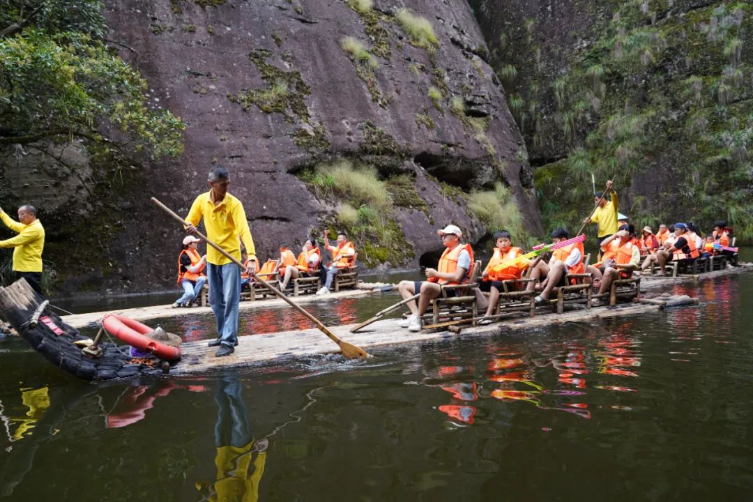 中秋遇上國慶,8天長假成為人們走親訪友、出門旅行的好時機。泰寧的各個景點旅游區持續迎來客流高峰,旺盛的人氣也為地方消費市場增添了新活力。 在大金湖景區,前來游玩的游客絡繹不絕,大家乘船感受千巖萬壑的丹山與浩瀚的湖水交相輝映,盡情享受獨步天下的水上丹霞奇觀。