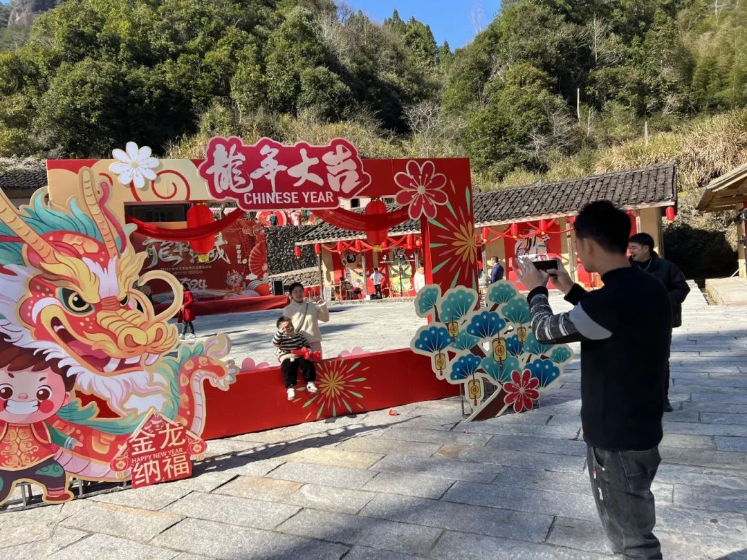 活動現場,熱鬧非凡,年味十足。大家看著精彩的表演,嘗著本地特色美食,圍繞著打卡點進行拍照。活動中還有龍王巡街、街頭魔術、民謠歌手等精彩的節目為新春致禮。