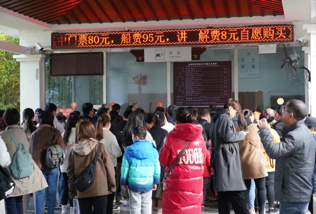 2月13日,在大金湖景區,前來游玩的游客絡繹不絕。游客們登船游湖,感受千巖萬壑的丹山與浩瀚的湖水交相輝映,欣賞獨特的水上丹霞,游覽絕世奇觀甘露巖寺,盡情享受假期的愜意時光。
