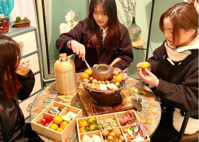 除了傳統民俗表演,古城還興起新“潮流”,不少年輕人身著漢服在古城漫步打卡。在左圣路一家特色店鋪內,既可“圍爐煮茶”,又提供特色妝造、服裝出租、攝影等服務。不少游客紛紛體驗漢服、畬服的妝造,店員忙得不亦樂乎。