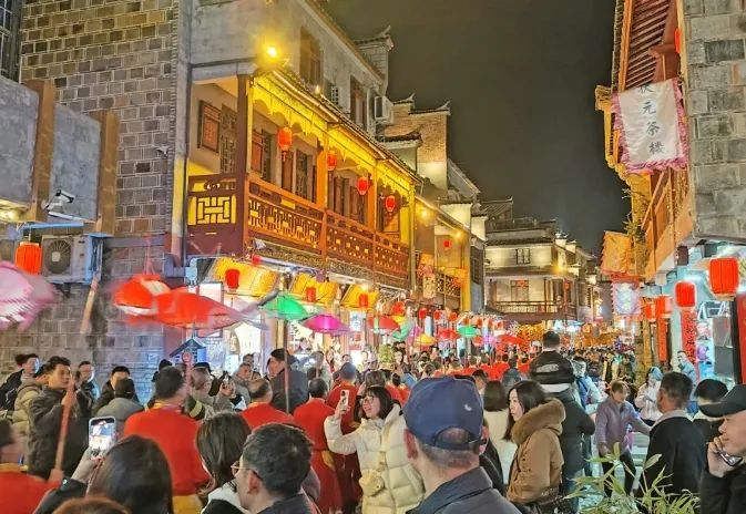 今年春節期間,泰寧古城大街小巷張燈結彩,人流如潮。各色民俗表演走街串巷,魚子燈、橋燈、花燈等爭奇斗艷,梅林戲、儺舞、擂茶、棕編等非遺文化魅力迸發,走到哪都人頭攢動,熱鬧非凡。