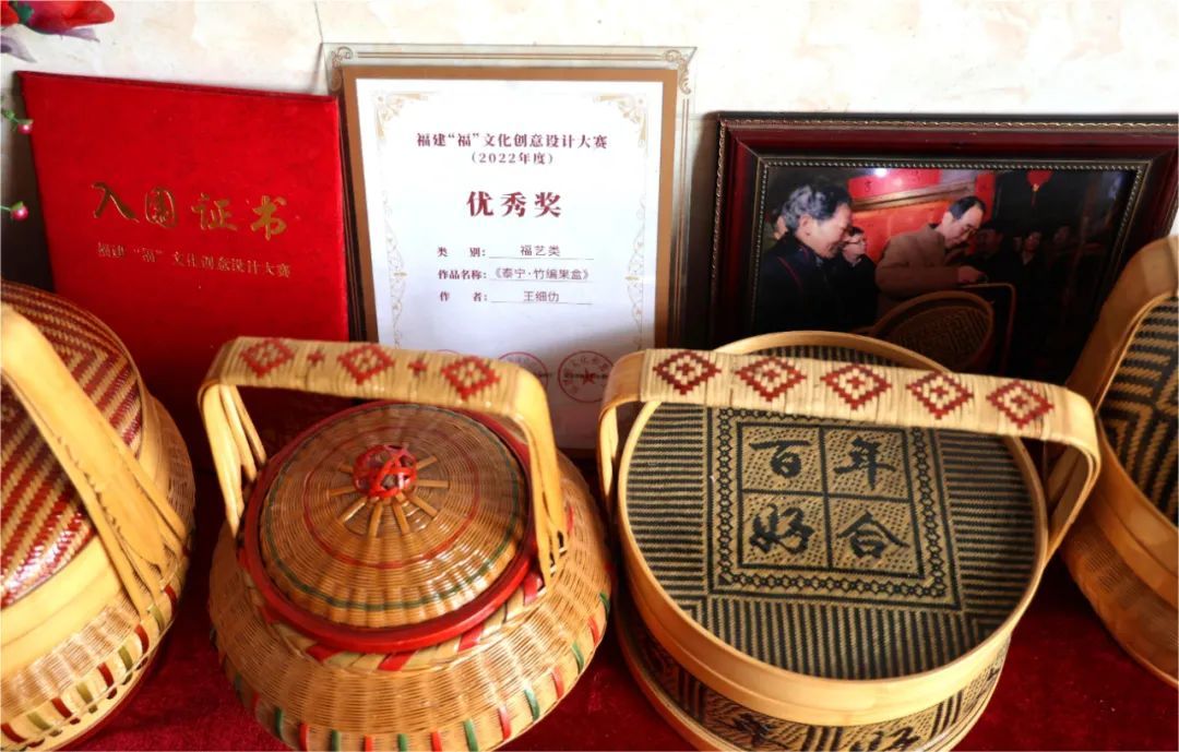 這些竹編精品不僅面向市場銷售,更頻頻亮相賽事與展會。2022年,王師傅制作的作品《圓簸箕》《起親果盒》《全福籃》等作品入圍2022年福建“福”文化創意設計大賽,其中,《起親果盒》憑借精巧工藝斬獲優秀獎,讓傳統竹編在現代舞臺綻放光彩。(記者:龔依敏) |