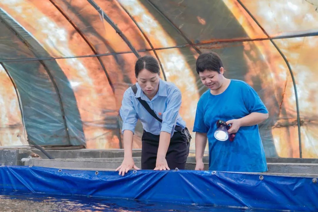 “楊大姐,忙著呢?最近觀賞魚養殖情況怎么樣?”7月14日,泰寧縣梅口鄉謝家坪村黨支部書記、村委會主任湯文娟像往常一樣,來到村里的欣航養殖農場,向負責人楊良花了解最近農場的發展情況,并記錄下需要村里幫忙協調解決的事項。