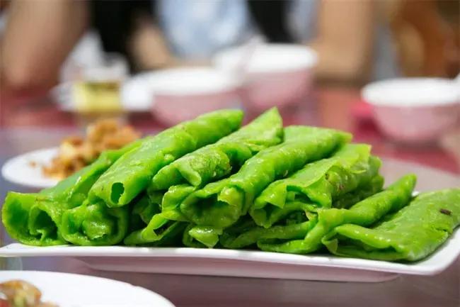 韭菜汁染就的翡翠餅皮,卷起豆干與蝦米的咸鮮,口感細膩,餡料咸香,糯軟清甜。 游漿豆腐