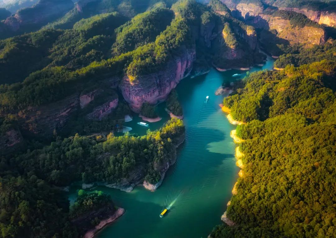 陳祖俊 攝 守護綠水青山,打造生態旅游典范 暑期,泰寧大金湖景區迎來旅游佳季,溫潤湖光與漸染秋色相映成趣,涼爽氣候吸引不少游客乘游船賞景,感受山水間的愜意之韻。 泰寧風景旅游區以丹霞地貌聞名,大金湖、寨下大峽谷等景區內,丹山碧水與茂密森林相映成趣。游客漫步其中,自覺愛護環境,景區內分類垃圾桶擺放整齊,衛生間干凈衛生。志愿者在景區巡邏,倡導“無痕旅游”。 多年來,泰寧高度重視生態保護,大金湖實施嚴格水資源管理與生態修復措施。曾經因過度養殖導致水質下降的部分水域,經過治理,水質穩定達到地表水標準,重新煥發生機。 如今,大金湖不僅湖水清澈,周邊生態系統也得到恢復,新增不少水上娛樂設施和觀鳥點,吸引大量游客,成為生態旅游的典范。 “第一次來泰寧,這里的山水太震撼了,空氣清新,環境干凈,玩得特別舒心。”來自廈門的游客林先生說道。