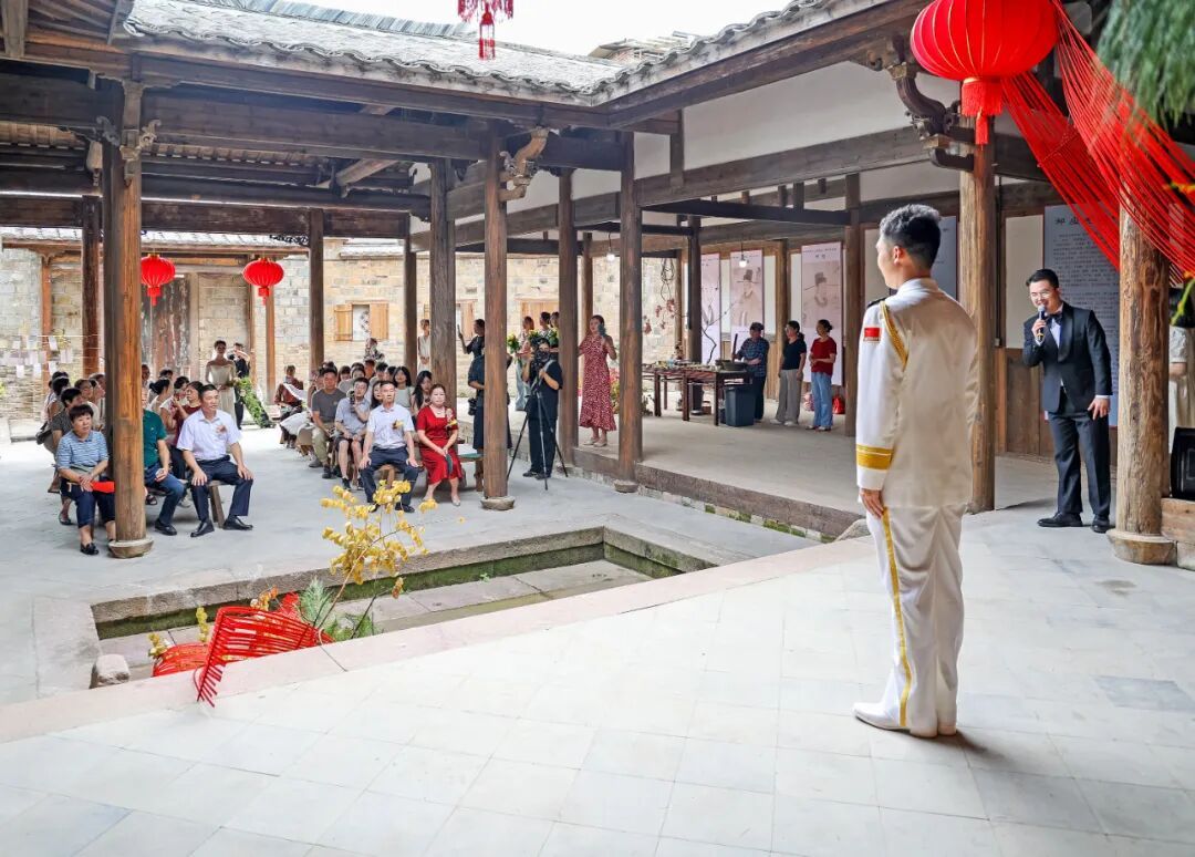 親友們坐在古宅的廳堂、院落中, 共同見證這一幸福時刻, 大家的目光里,滿是祝福與喜悅。 此刻, 古宅不再是沉默的歷史載體, 而是充滿了歡聲笑語, 煥發出新的生機與活力。