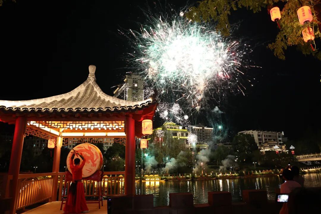 隨著主持人熱情洋溢的開場詞,活動進入高潮環節。在全場倒計時中,嘉賓們移步狀元鼓前共同擊鼓,鼓點響起的瞬間,絢爛煙花在空中綻放,十里金溪夜游項目宣告正式啟航。隨后,大家登船開啟首航體驗,親身感受夜游項目的獨特魅力。