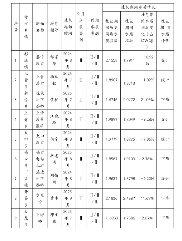 現向社會公開通報泰寧縣各斷面水質類別、水質指數及河湖“四亂”整治情況。
