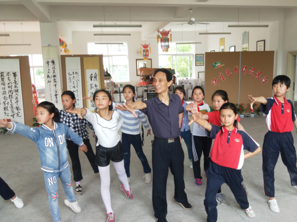 “紅纓槍閃閃亮,緊握手中保家鄉……”在泰寧縣朱口鎮中心小學校園里,一曲《少小報國爭榮光》的梅林戲唱段傳出,非遺代表性傳承人黎秀珍正耐心教導學生們舞蹈動作。