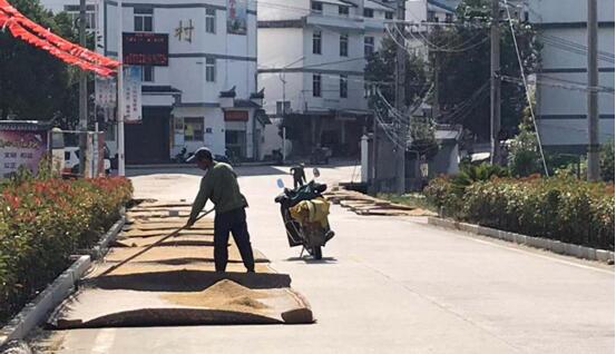 金秋九月,烈日當(dāng)空,正值秋收晾谷的高峰期,各村村民為了方便直接利用公路晾曬稻谷。在岔路、拐角、農(nóng)村道路等公路旁上鋪著各式各樣的草墊,墊子上晾曬著稻谷,有的村民為了防止車輛碾壓還在路面上碼上了石頭、樹墩、木棍作為路障。